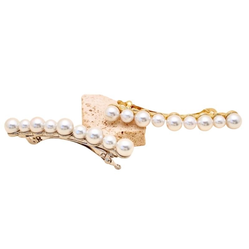 Elegante e atemporal, a Fivela Pearl Classic destaca-se pelo design minimalista com pérolas alinhadas em perfeito equilíbrio. Disponível em dourado e prateado, é o acessório ideal para realçar penteados com sofisticação discreta. Uma peça versátil que combina tanto com ocasiões especiais quanto com looks do dia a dia.