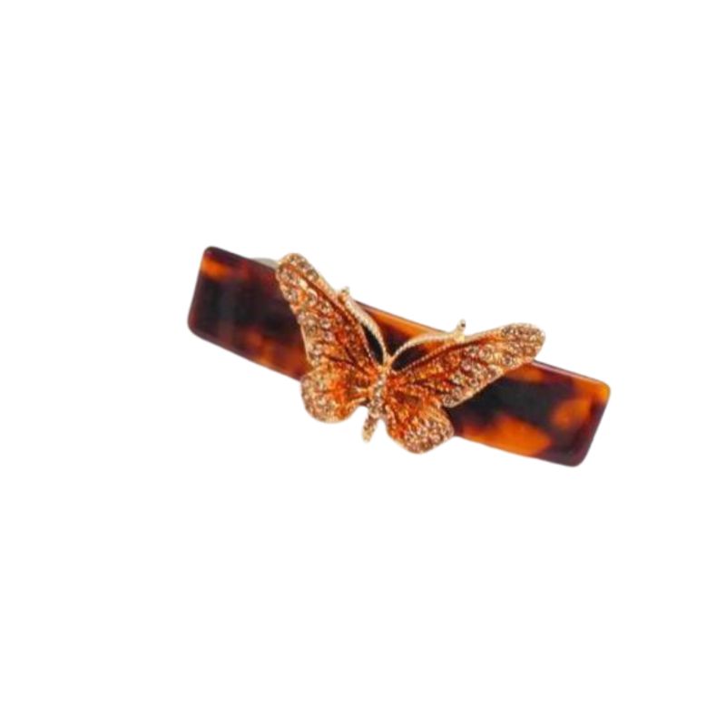 A Fivela Alice é o toque de elegância que transforma qualquer penteado. Com base nas cores bege, onça e creme, ela combina o charme do efeito tartaruga com o brilho delicado da borboleta dourada cravejada, que traz um ar romântico e sofisticado. Ideal para prender mechas ou enfeitar o cabelo com estilo e leveza. ✨