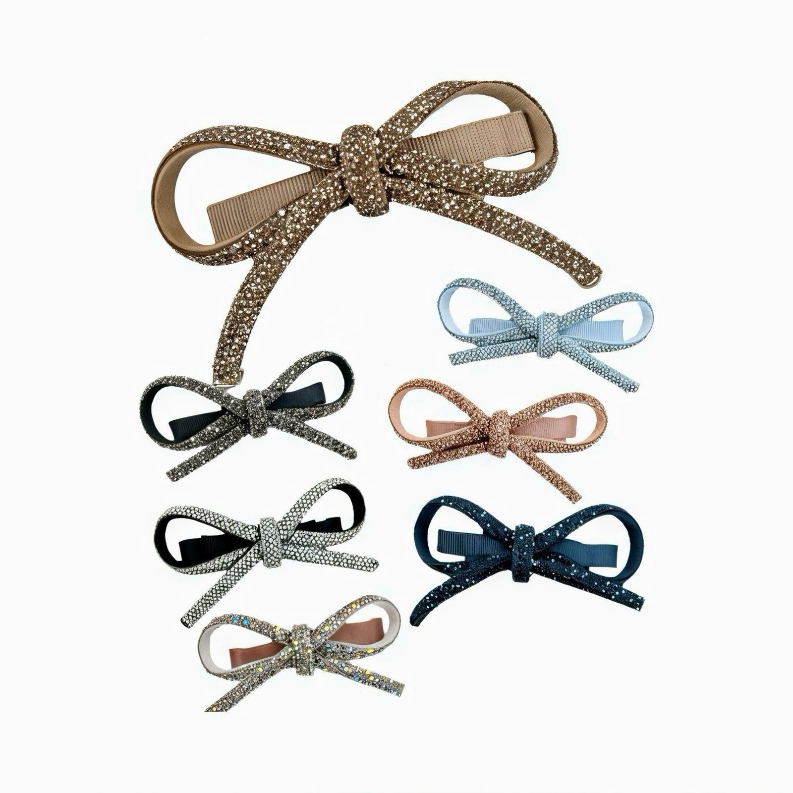 O Laço Louane é feito em fita com acabamento cintilante e formato duplo delicado — perfeito para dar um toque sofisticado ao penteado.