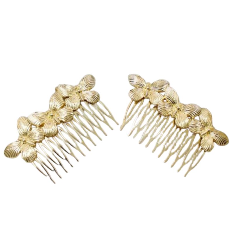 O Pente Allegra é ideal para dar um toque sofisticado aos penteados. Seu design floral e acabamento dourado trazem elegância e leveza, perfeito para festas e ocasiões especiais.